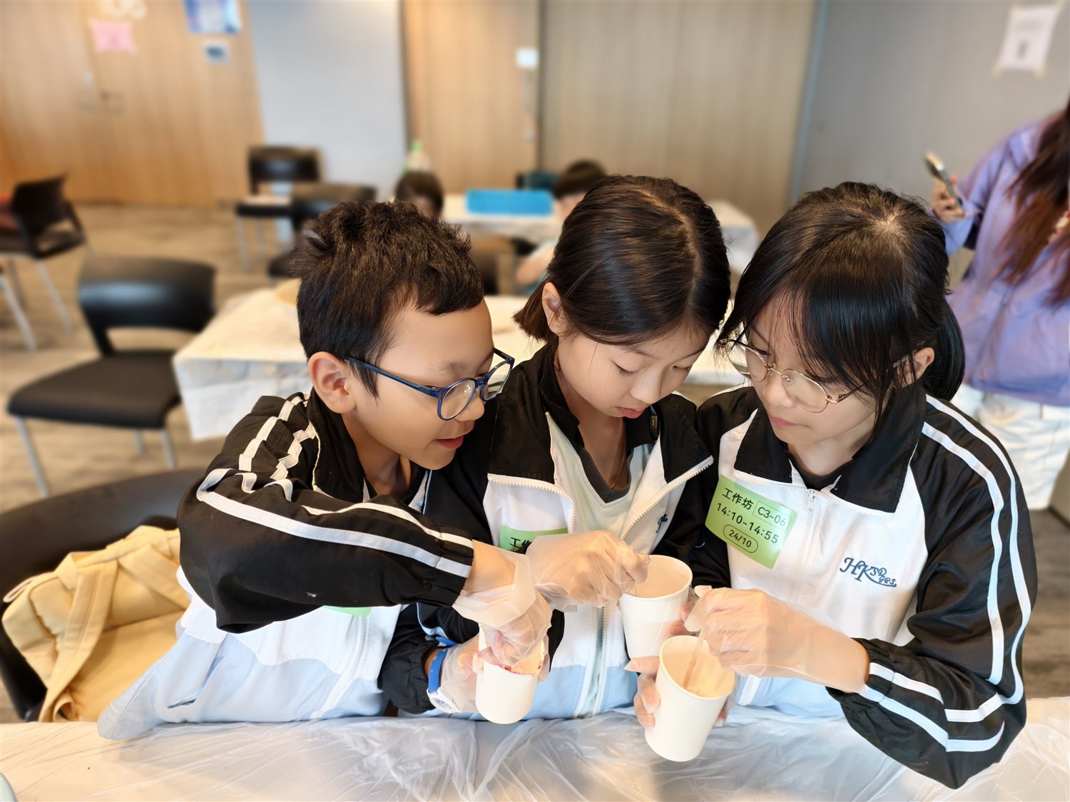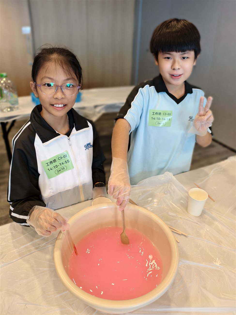 同學們參加了「UGOT視覺AI應用工作坊」,了解人工智能及臉部識別的科技。另一組同學在「變色泡泡沐浴球工作坊」學習了有趣的化學知識,動手調整了有顏色的沐浴球材料。之後,同學們到展覽區參觀各個攤位,認識了香港的創新科技發展,大家都滿載而歸呢!