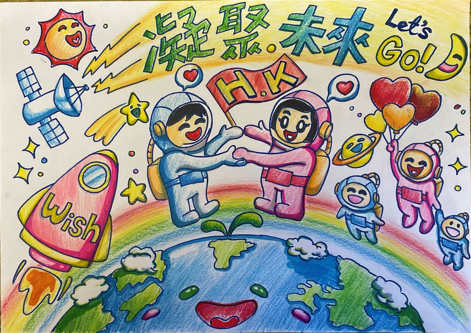 創作概念: 希望人類和平相處,凝聚力量,未來乘搭「希望號」太空船到宇宙探索,開創更好未來。