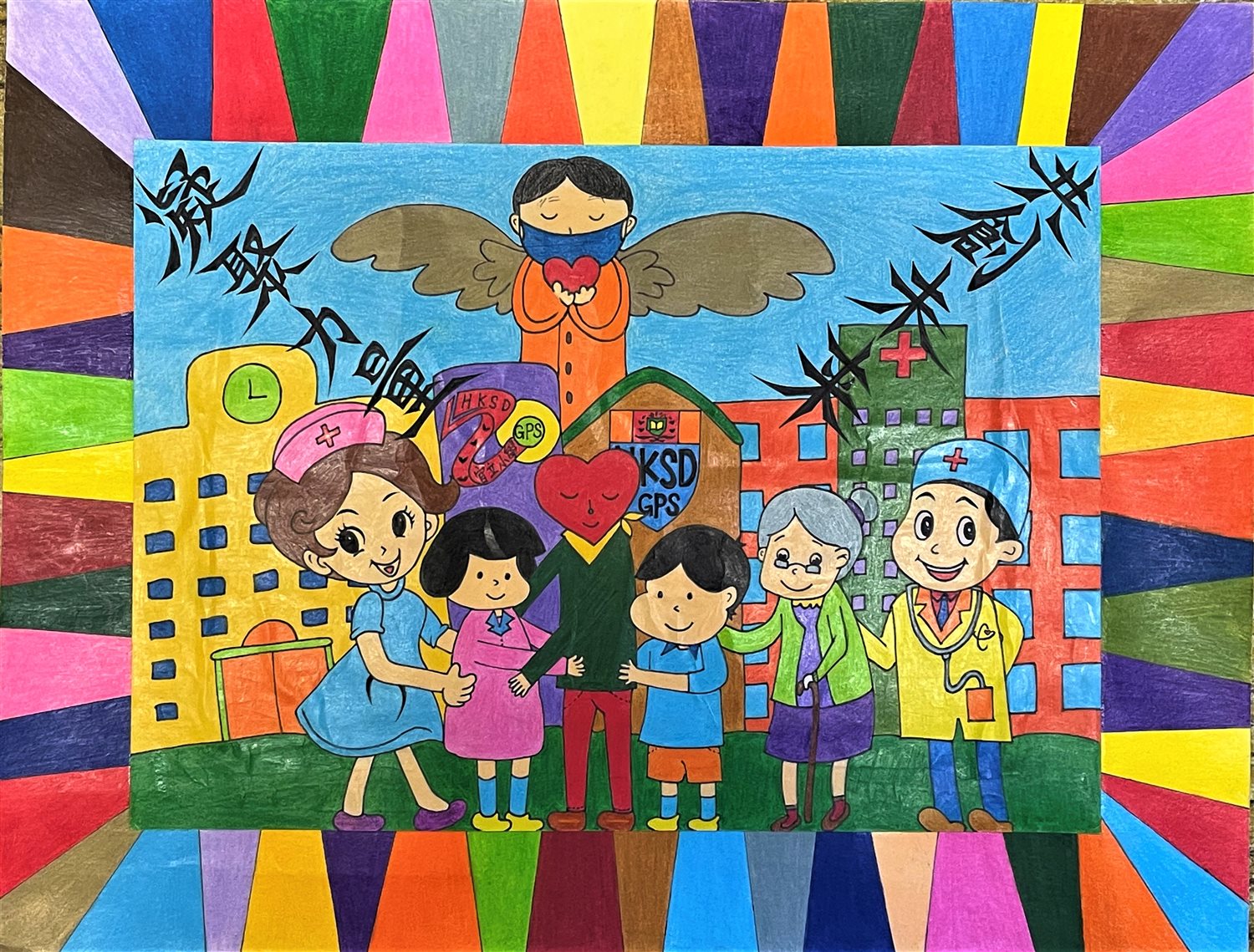 創作概念: 萬眾一心迎挑戰,眾志成城戰疫情。我們一起心手相牽凝聚力量,共創春暖花開的未來。