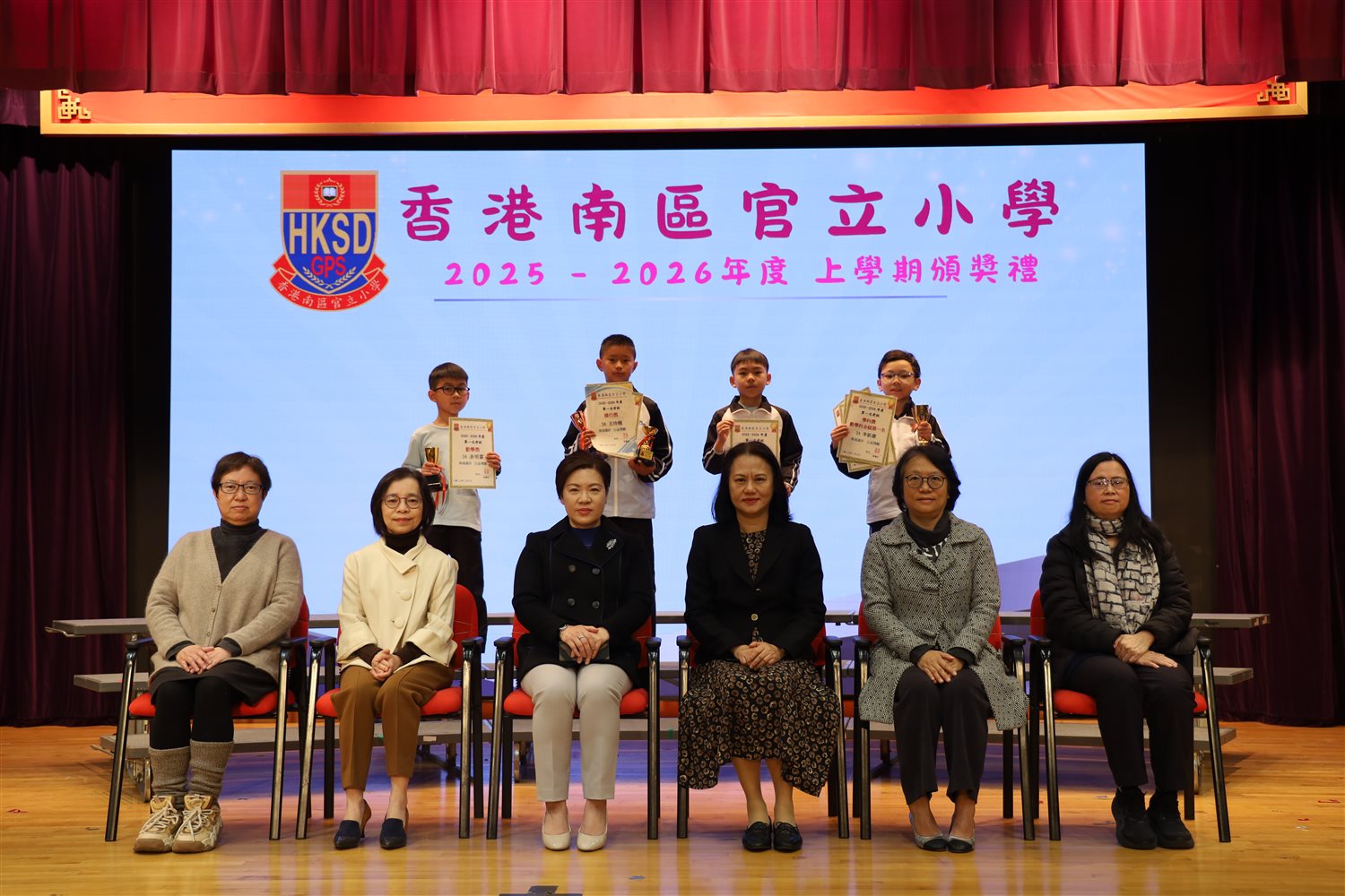 上學期頒獎禮已於2月9日 (星期一) 上午舉行。當天得獎同學的家長亦獲邀前來參加頒獎禮,家長不單可以見證自己孩子的學習成果,更可以彼此分享喜悅,頒獎禮後家長、老師及同學一同拍照留念,在一片愉快歡樂聲中完滿結束。