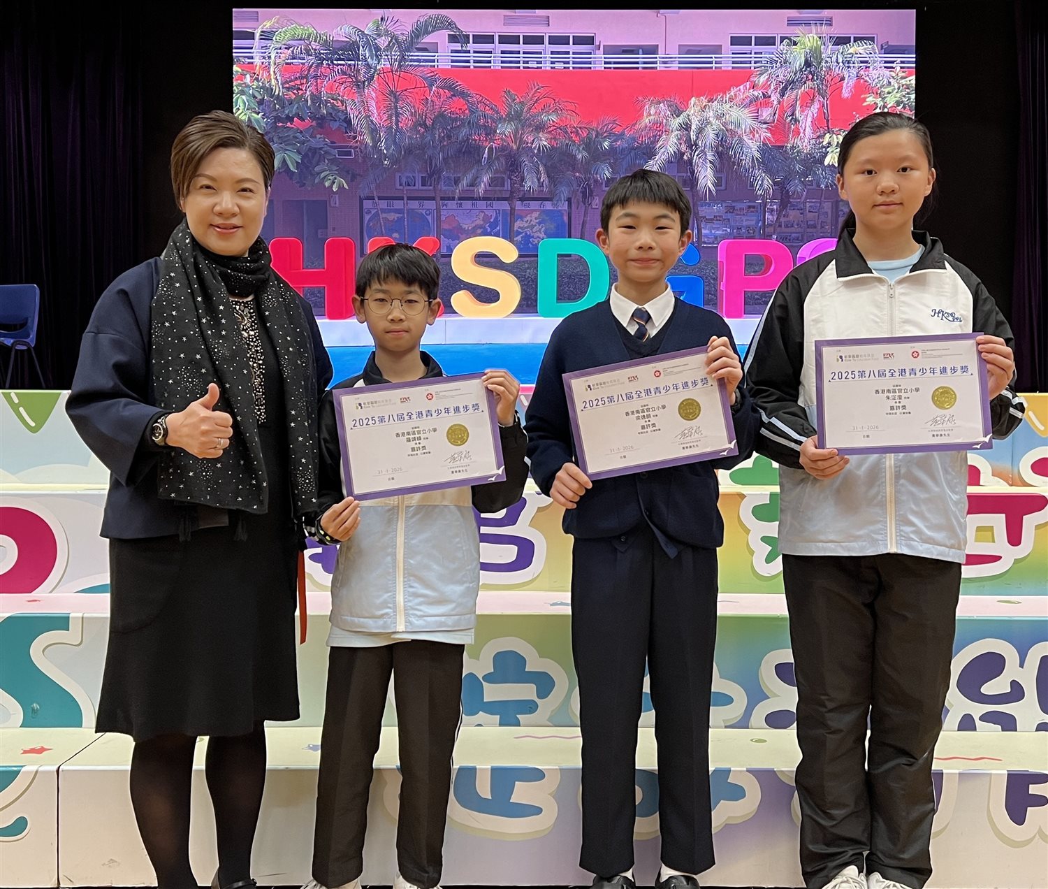 「全港青少年進步獎」由已故杜葉錫恩博士發起,旨在鼓勵學生於學習與品德方面持續進步,並積極參與校內外活動及服務。自2015年起舉辦至今,今年已踏入第八屆。本校欣然宣布,有三位同學榮獲「2025年第八屆全港青少年進步獎」嘉許獎,他們分別是5B羅靖峰同學、6B梁逸朗同學及6B朱淽澄同學。在此謹向三位同學致以熱烈祝賀,並期望他們繼續努力,發揮榜樣精神。