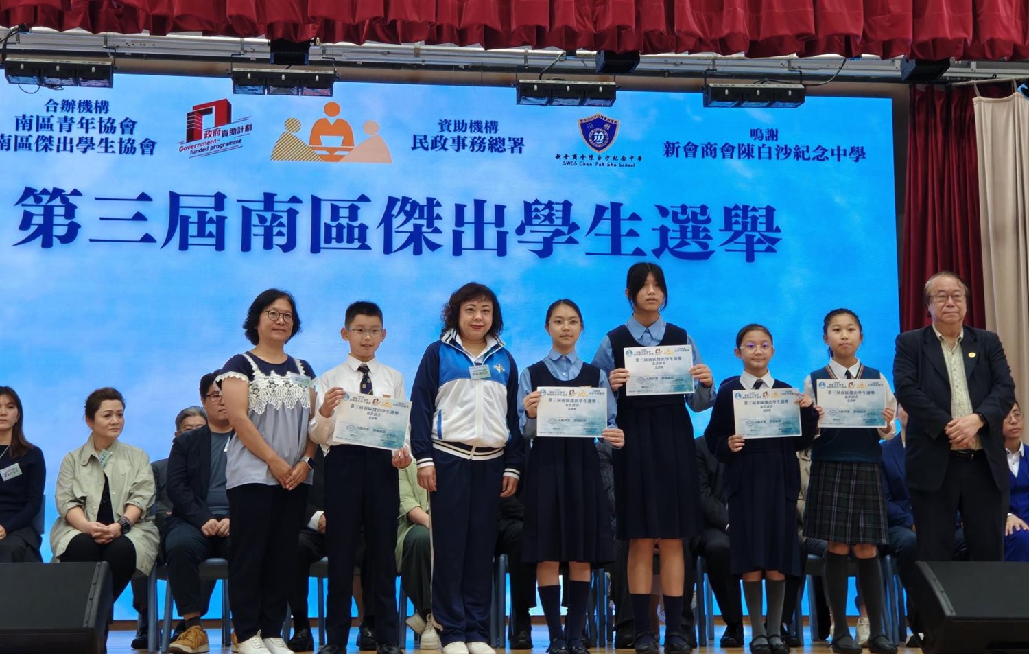 由民政事務總署贊助、南區青年協會及南區傑出學生協會聯合主辦的「第三屆南區傑出學生選舉」已於2026年3月28日圓滿結束。以下同學表現優秀,獲得傑出學生獎及嘉許證書。