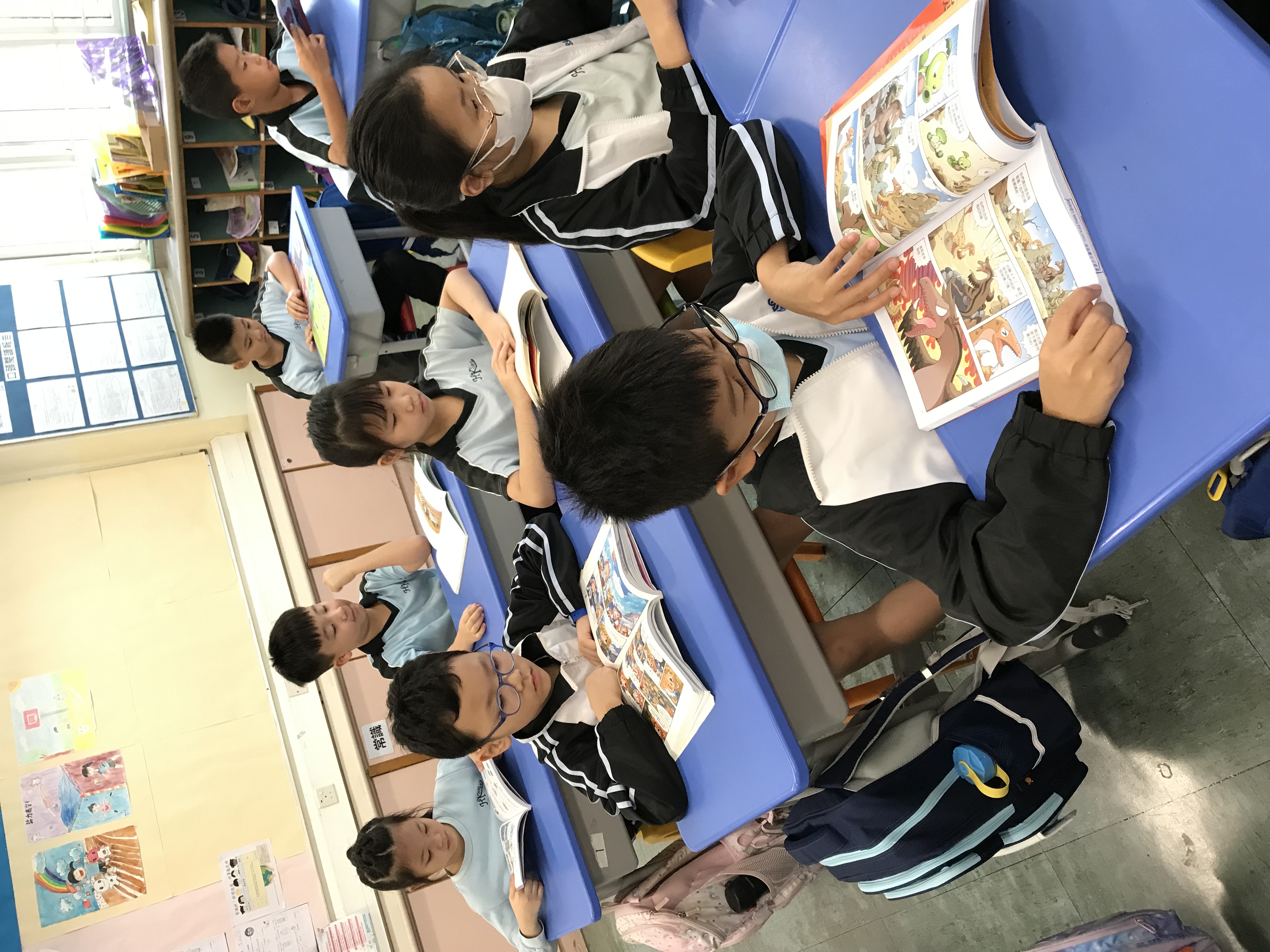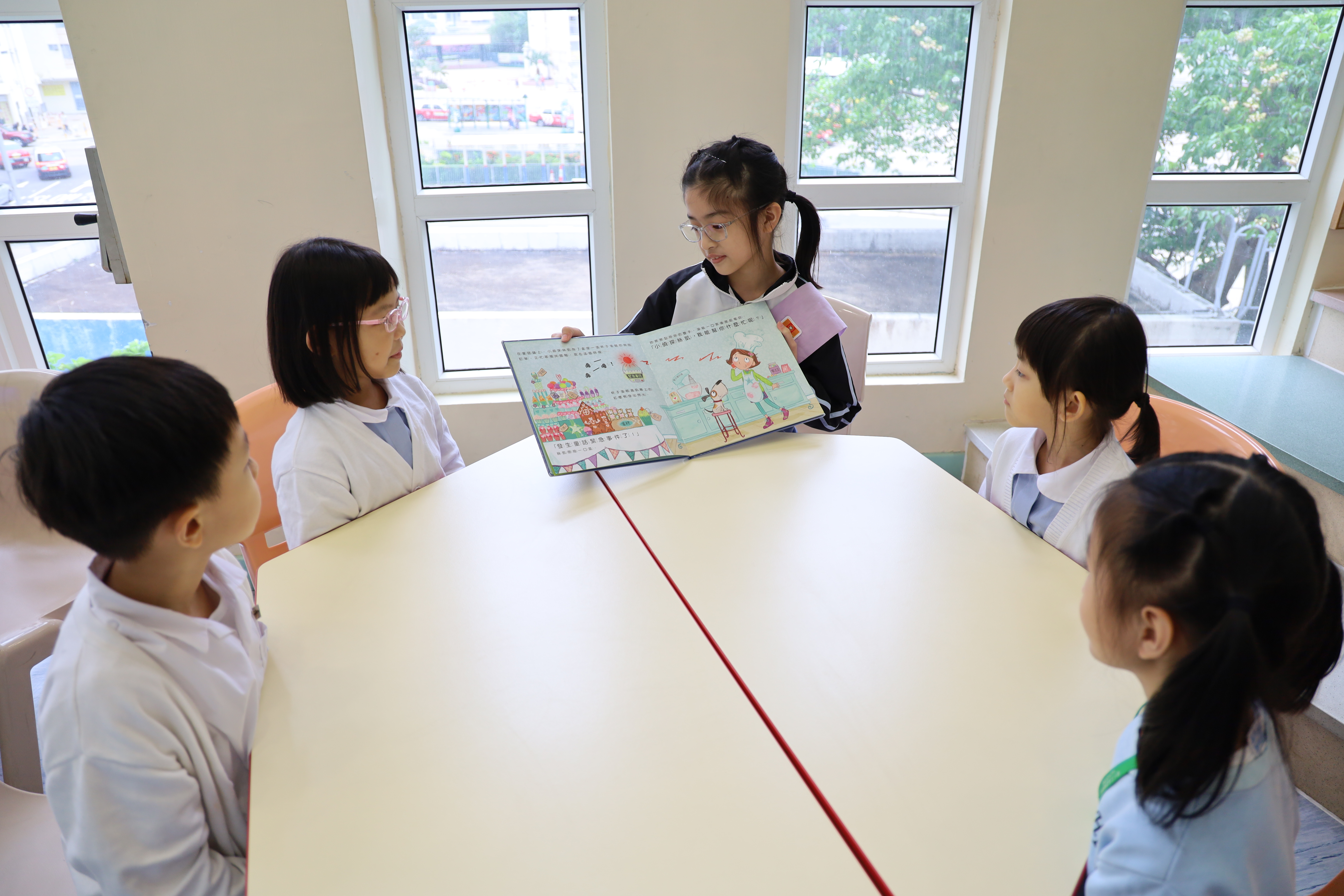 閱讀大使於午息時段到圖書館為一至三年級同學講故事。
