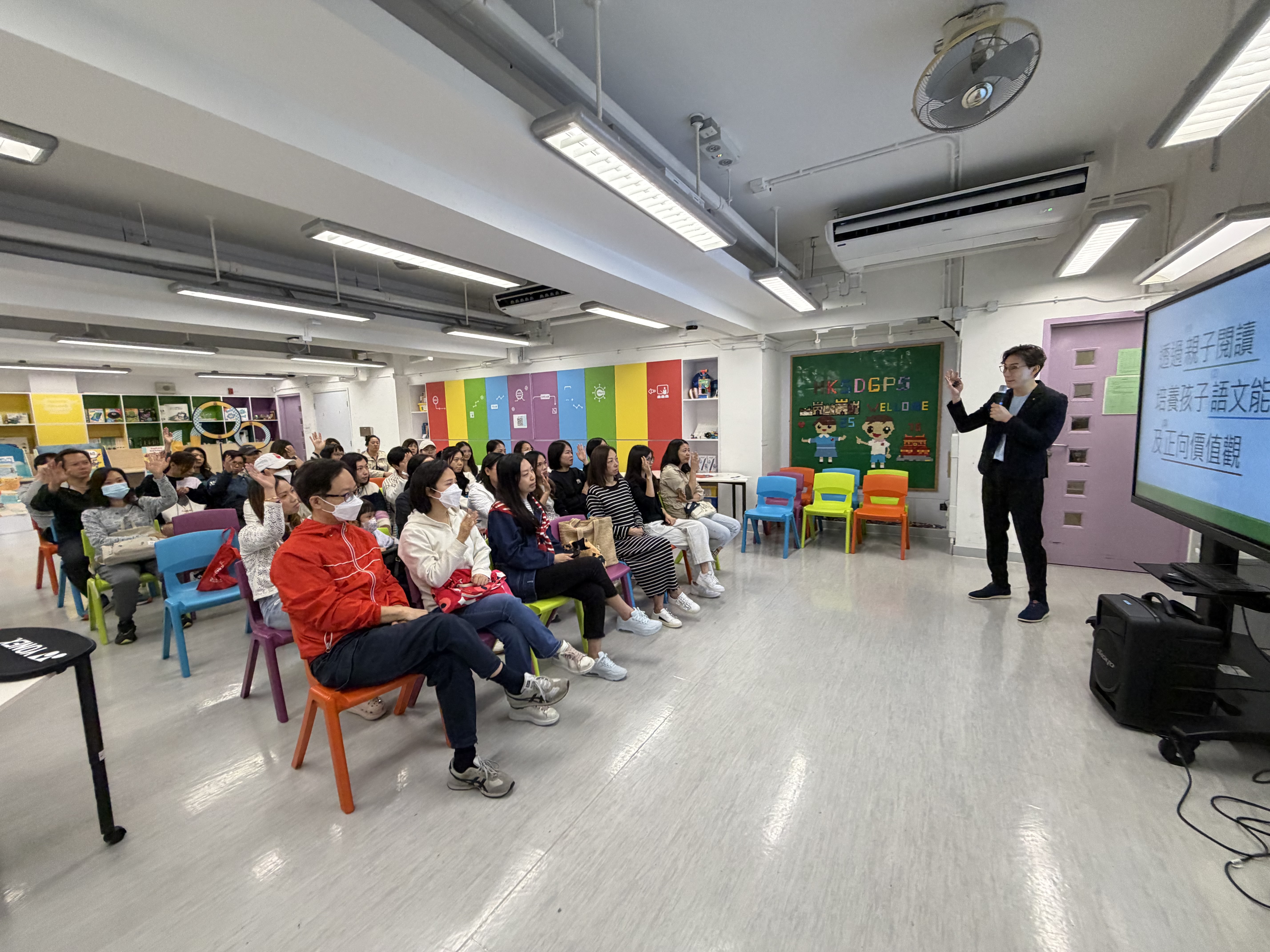 『故事爸媽』家長義工於課前及早讀時段為一至三年級學生講故事。