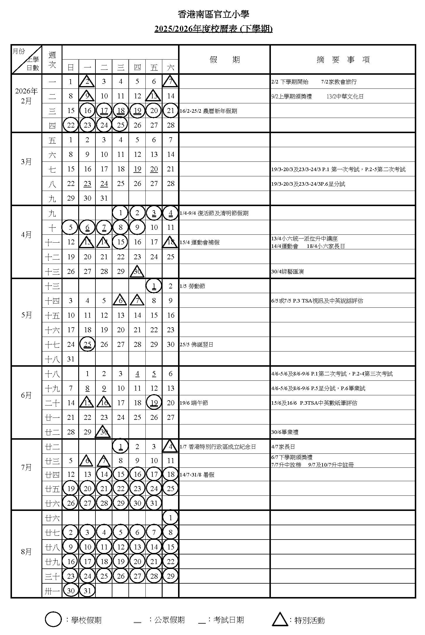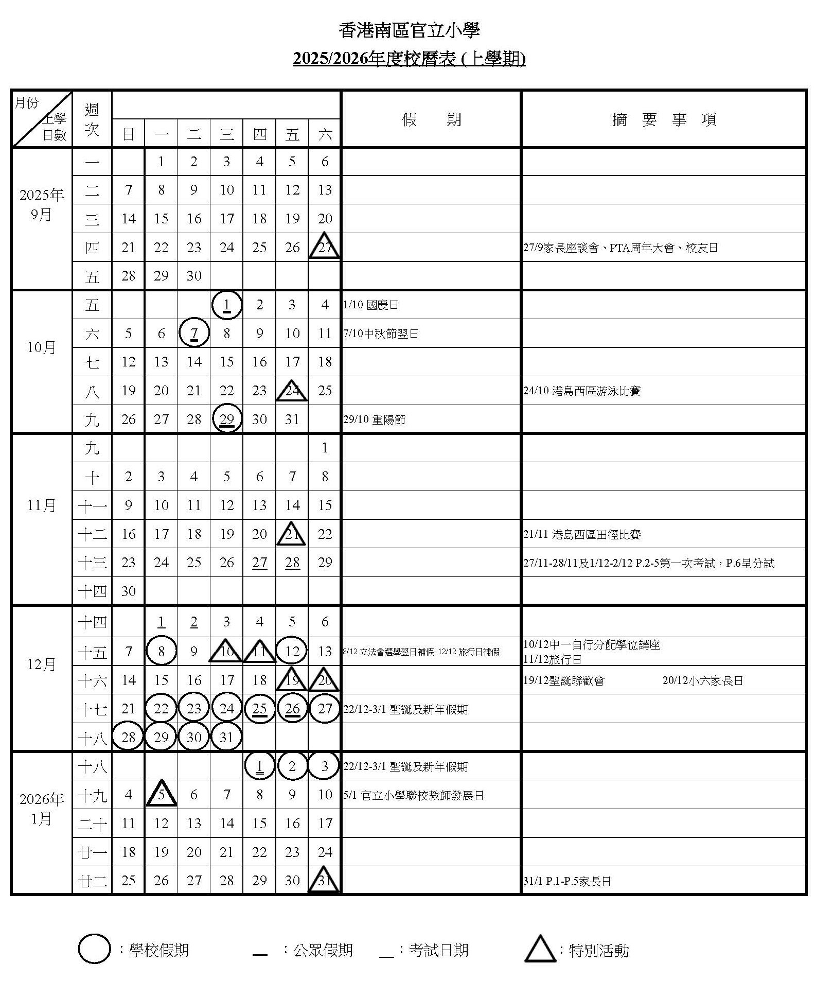 校曆表