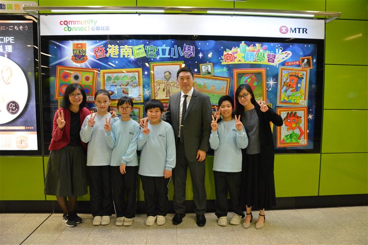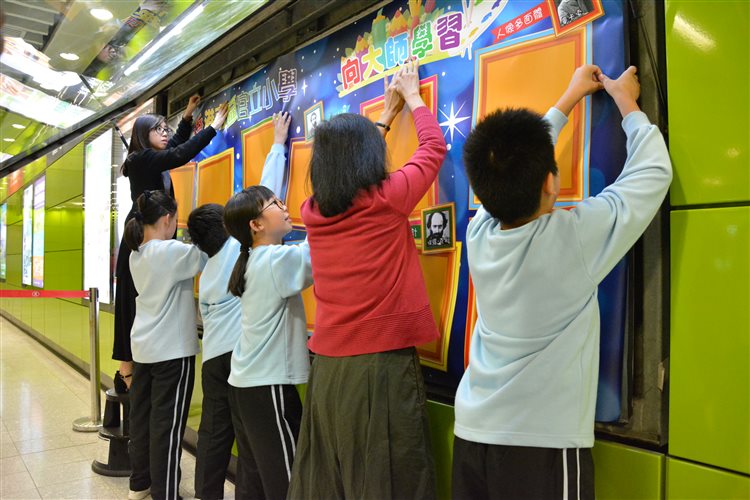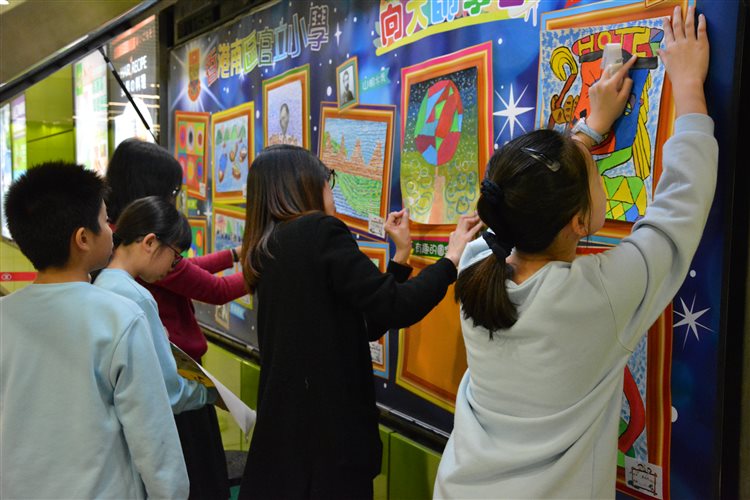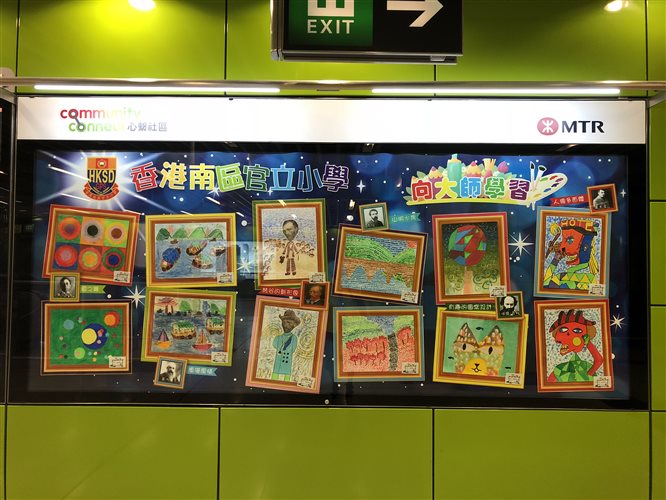 本校視藝科老師帶同4位五年級同學到港鐵海怡半島站,協助把名為「向大師學習」的作品張貼在社區畫廊。歡迎大家到社區畫廊欣賞同學色彩繽紛的畫作。