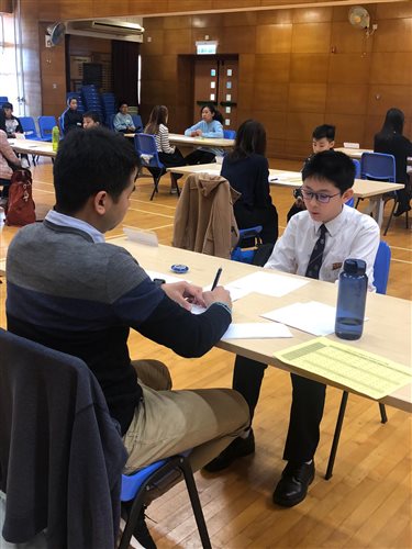 為協助同學更早準備中一入學面試,學校為六年級同學舉行中一入學面試課程及模擬面試工作坊。 在升中面試課程中,導師向同學講授面試技巧及臨場應變技巧,以增強同學的自信心及為他們面試作好準備。 同學透過參與模擬面試工作坊,「實戰」面試新他們的溝通表達技巧、領導才能及邏輯思維。這些元素對於中學生來說,是非常重要的。希望同學在短短的面試過程中,能自信地展現個人獨有潛能及自信應對,提高獲得取錄的機會,邁進理想的新階段。