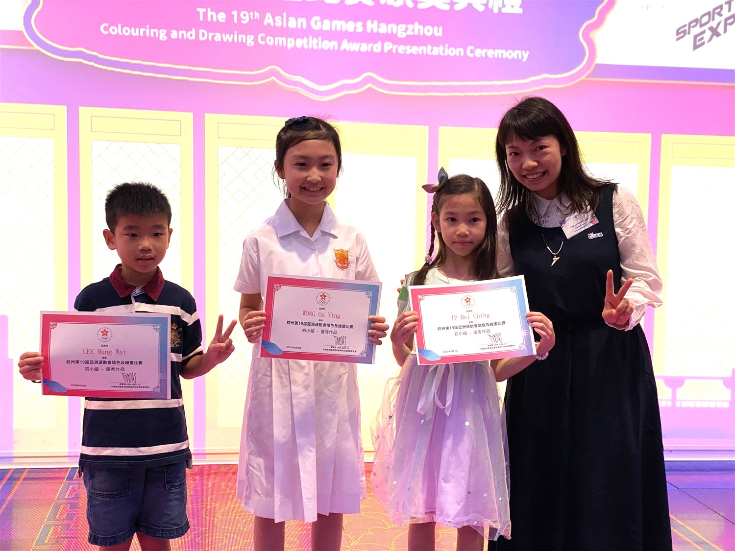 恭喜2A林希陽、2B李洪偉、5A林芊仴榮獲《杭州第19屆亞洲運動會填色及繪畫比賽》優秀作品獎。