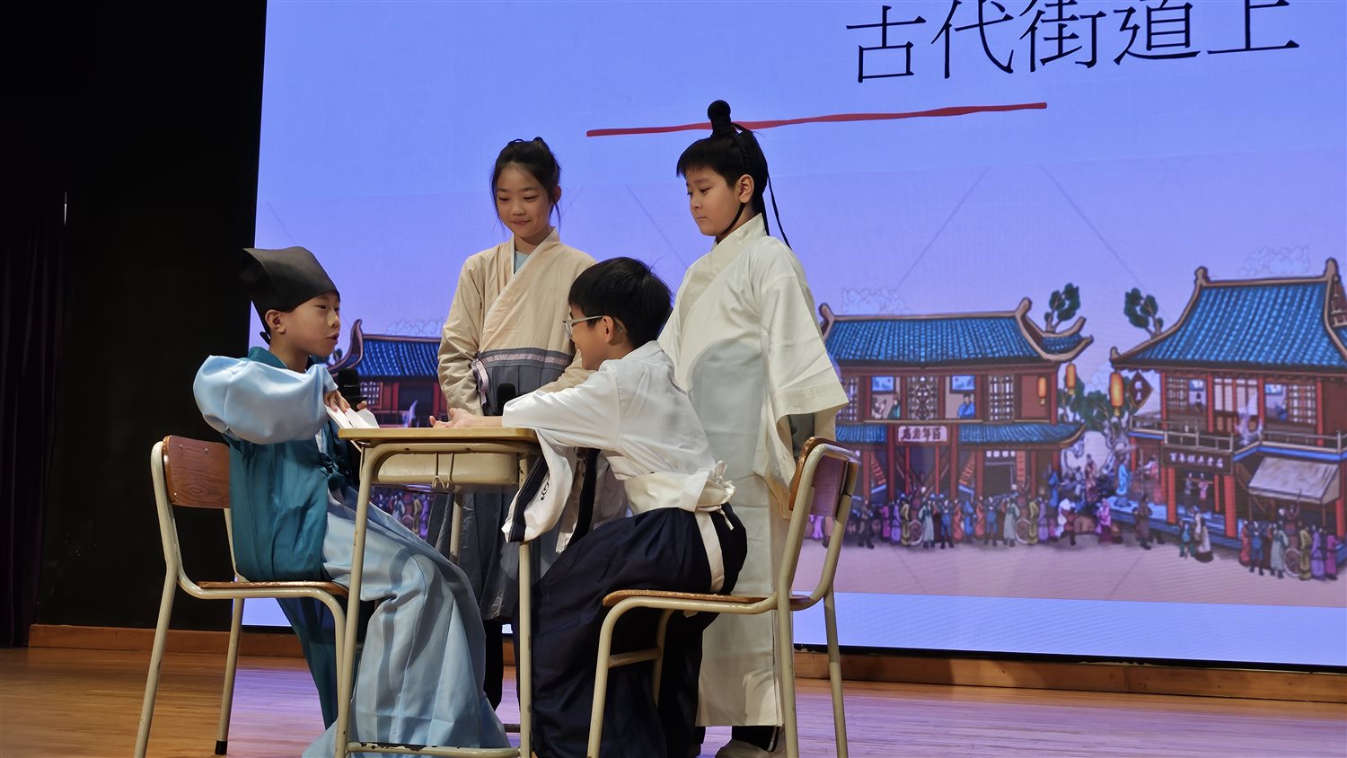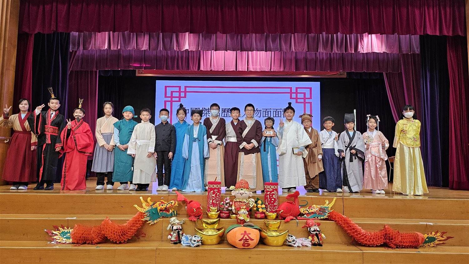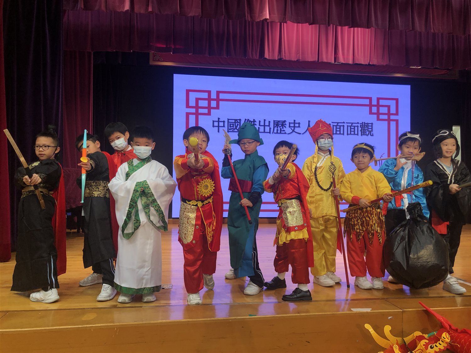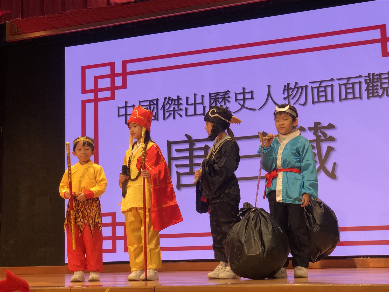 2023-2024年度中文科校內活動:《中國傑出歷史人物面面觀》 為鼓勵學生多閱讀中國歷史人物的書籍,讓學生學習主動搜集資料 了解中國歷史人物的思想及成就,本校中文科於2024年1月31日為 小一至小六同學舉行了《中國傑出歷史人物面面觀》校內活動。當天 同學以「班本形式」進行活動,參演同學施展渾身解數,按主題演活 不同的歷史人物,博取全場熱烈的掌聲。