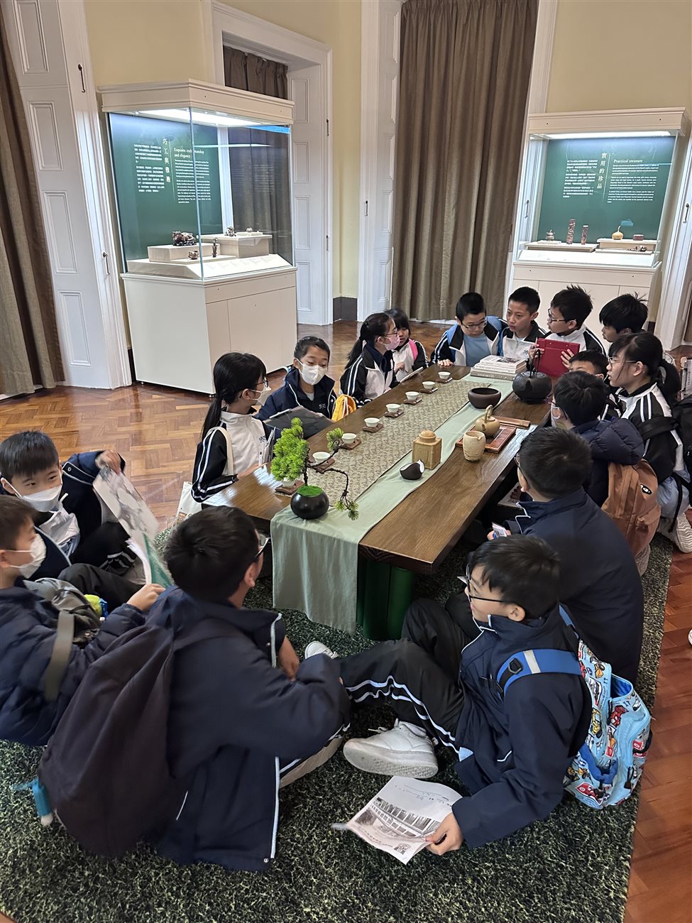 為配合「中華文化月」主題學習,學校安排五年級同學分別於2024年1月22日及25日參觀茶具文物館,並進行英文科及常識科跨學科學習活動,體驗全方位學習精神。 在導賞員帶領下,同學們觀賞珍貴的茶具收藏品和了解茶道文化的歷史背景。透過展覽和解說,同學們能夠深入瞭解茶具的製作工藝、不同茶器的用途,以及茶道禮儀的重要性。參觀後,同學們閱讀不同的學習材料,增進對傳統茶文化的認識和尊重中華優秀傳統文化及文明。