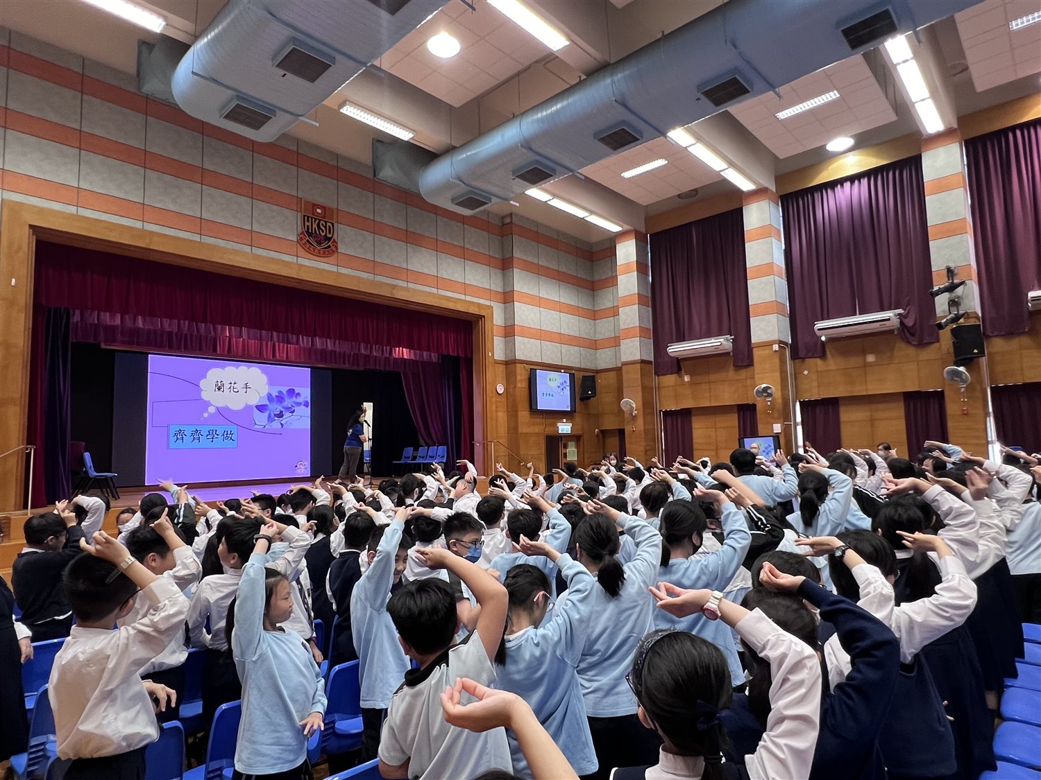 為提升學生對粵劇的認識及興趣,以及培養學生欣賞中國藝術文化的態度,本校音樂科為全體四、五年級學生舉辦粵劇教育工作坊。過程中,學生親身學習粵劇做手及水袖舞,更一同以工尺譜頌唱歌曲,表現得十分興奮呢!