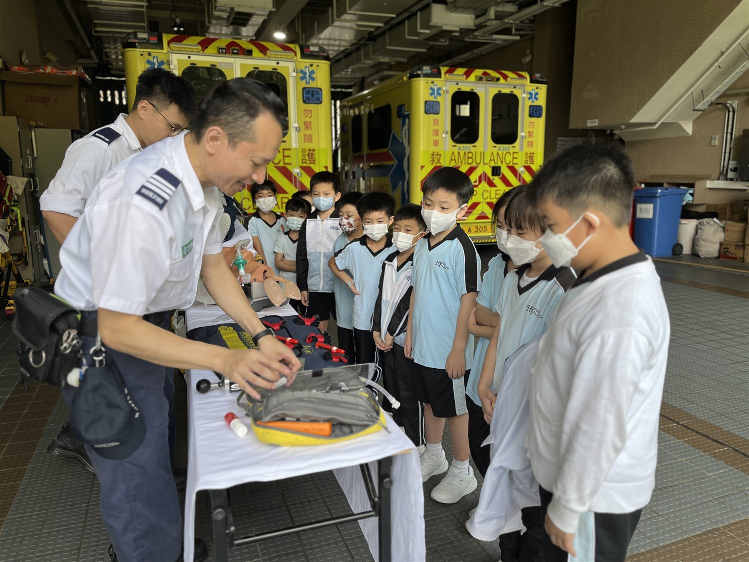 為配合常識科的學習內容,學校安排二年級同學於4月11日及12日參觀香港仔消防局暨救護站。參觀當天,消防員和救護員生動地介紹各種設施和裝備。同學們更可以親身感受一些消防裝備的重量和接觸部份救援工具,他們既興奮,又覺得新奇有趣!
